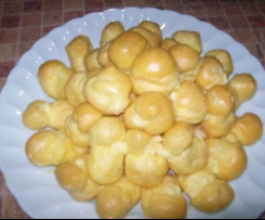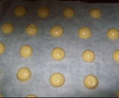 "Blokada naczynia miksującego" do ostudzenia. Wlaczyc na obr 4, dodawac po 1 jajku, nastepnie wyrobic : 30-40sek / obr 5. Klasc "kulki" wielkosci orzecha, w odstepach, piec w nagrzanym piekarniku: 180° / ok. 20min.Krem: do