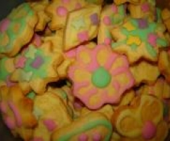Ciasto wyjąć, schłodzić a następnie rozwałkować na grubość 5 mm i wykroić foremkami ciasteczka w kształcie kwiatków, motylków itp.