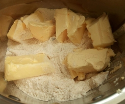 przesypac do naczynia wymieszane,dodać masło pokrojone na kawałki,i zółtko,wymieszać 20s/obr5,wyłozyć ciasto do miski i włożyć na chwilkę do lodówki do schłodzenia,w tym czasie tortownicę srednica25 wysmarować tłuszczem i posypać bułka tartą,wyłozyć 2/3 ciasta i ugniatać palcami delikatnie,na ciasto wyłozyć śliwki pokrojone na ćwiartki jeśli uzyjesz zwykłych sliwek to na połówki.