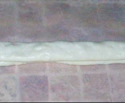zrobiłam z dwóch porcji ciasta francuskiego gotowego , jedne z nadzieniem z mozzarellą a drugą z zółtym serem