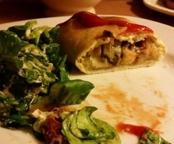 u mnie było to co w lodówce - cukinia, kurczak, mozzalrela, szykna, i suszone pomidory z dynia, ni miałem przyprawy do pizzy ale za to była do spagetti