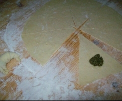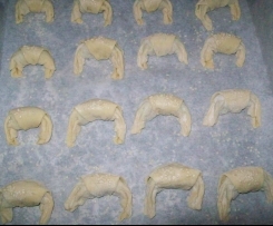 "Ciasto" . Przelozyc do miski, zostawic do wyrosniecia. Ciasto podzielic na 4 czesci. Kazda rozwalkowac, podzielic na 8 tròjkatòw, nakladac nadzienie, formowac cornetti. Ulozyc na blaszki, lekko posmarowac mlekiem, posypac sezamem, zostawic na 30min do wyrosniecia. Piec w goracym piekarniku: 200° / ok. 10-15min. Gorace ponownie lekko posmarowac mlekiem, zostawic do przestygniecia.Ja zrobilam 2 ròzne nadzienia: