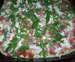 "Ciasto" . Wyjac, zostawic do wyrosniecia. Rozwalkowac, nalozyc nadzienia wg gustu ( moja jest z pomidorami, mozzarella, parmezanem i rukola; druga zas , jako focaccia - olej z oliwek , ciut grubej soli i rozmaryn). Zostawic jeszcze 30min do wyrosniecia. Piec w nagrzanym piekarniku: 180° / do zrumienienia.