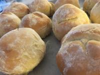- Z wyrośnietego ciasta uformować bułeczki (wielkość według uznania - mi wychodzi ok 14 bułeczek dość sporej wielkości), obtoczyć delikatnie w mące - ułożyć na papierze do pieczenia na blasze, przykryć sciereczka i odczekac 10 min. Gdy bułki wyrosną naciąć na każdej z nich dość głęboki rowek