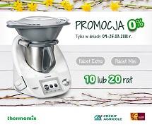 Każda osoba, która zakupi Thermomix® od 09.03. do 25.03.2018 r. może skorzystać z promocyjnego kredytu 0%. Promocja dotyczy: oferty na Pakiet Extra i Pakiet Mini, 10, 20 rat w Alior Banku i banku Credit Agricole.