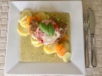 Mistrzostwo świata. Przepyszny sos bazyliowy, tylko ziemniaki wyszły mi troche za miękkie. Na pewno powtórzę nieraz ten pychota obiad!