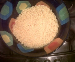 2) Umyc naczynie miksujące, nałożyc motylek, wsypać grysik kukurydziany dodac wodę i gotować 30 min/ 100•c/