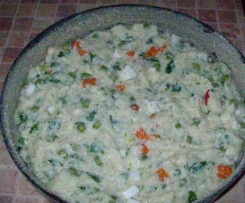 - 250 gramów ugotowanej marchewki, groszku i papryki czerwonej, wszystko pokrojone jak na salatke; ilosc zalezy od gustòw, aby bylo 250g wszystkiego razem