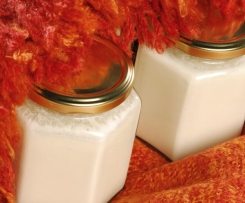 Nam najbardziej smakuje kokosowa wersja tego jogurtu. Robię z krowiego i koziego mleka. Niepasteryzowane mleko najpierw przegotowuję i studzę. Ważna jest jakość jogurtu i słoiki muszą być czyste. Polecam ten przepis.