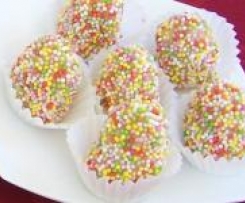 - Formować rękoma posmarowanymi masłem pralinkowe pisanki nadziewając każdą drażą, a następnie obtaczać w posypce. Umieszczać w papierowych papilotkach do pralinek.