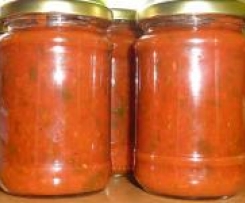 Warzywa umyć, oczyścić i pokroić na kawałki. Włozyć do naczynia razem z ziołami i zmiksować czas 30 sek, obr.5. Gotować 30 min/ 100 st/ obr.2, podczas gotowania zdjąć miarkę. Nastepnie dodać cukier, sól, pieprz i gotować jeszcze 15 min/ 100 st/ obr.2. Gorący sos przelać do słoiczków, zakręcić i ustawić na kilka minut do góry dnem. Można zapasteryzowac przez 15 minut (niekoniecznie).