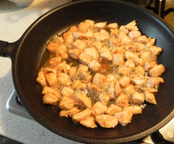 - 1 porcji pierś z kurczaka, bez skóry, pokrojona na kosteczki