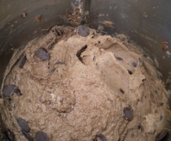 3. dodać pozostałe składnik oprócz groszów czekoladowych i ucierać 2 min. obr.poz.5