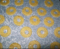 "Blokada naczynia miksującego" wlozyc wszystkie skladniki na ciasto: 25sek / obr 5. Wlozyc na 1h do zamrazalnika. Wyjac, rozwalkowac (ok. 0,5cm), wycinac ciastka- cale i z dziurka. Jesli podczas przygotowania ciasto sie rozgrzeje zbytnio, wlozyc na pare min. do zamrazalnika. Piec w goracym piekarniku: 175° / 12-16min ( te z dziurka pieka sie szybciej). Musza byc leciutko zrumienione. Wystudzic. Przekladac dzemem, posypac cukrem pudrem.