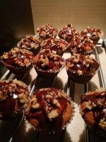 Świetne, dynie ugotowałam w mleku skondensowanym słodzonym, po ugotowaniu miałam jej ok.500g muffinki wyrosły wysokie, puszyste nie żaden zakalec. Babeczki polałam czekoladą i posypałam orzechami włoskimi.