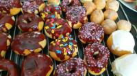 Bardzo smaczne bułeczki drożdżowe. Zrobiłam prawdziwie kolorowe, lepkie od lukru donutsy oraz maczane w maśle z cynamonem, posypane czekoladą. Pyszne, miękkie, fajne, ale zdecydowanie bułeczkowate, nie pączkowate. Dlatego 4*.