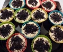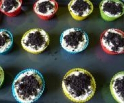 Do 12 papilotek na muffinki wkładamy po jednym ciastku oreo, nastepnie nakładamy masę serową i posypujemy zmiksowanymi ciastkami.
