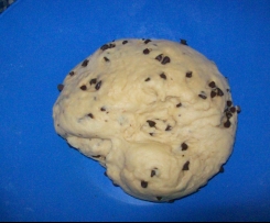 "Ciasto" . Zostawic do wyrosniecia (ok. 1h). Dodac krople czkoladowe: 20sek / obr