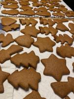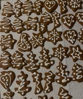 - Następnego dnia rozwałkować ciasto na obsypanej mąką stolnicy, wyciąć pierniczki, ułożyć na natłuszczonej blasze, piec 8-10 min.